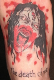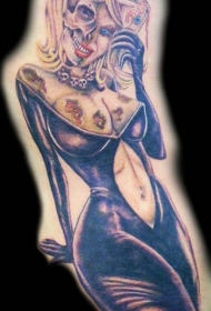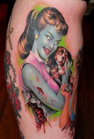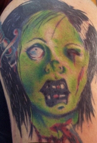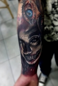 手臂new school彩色眼睛和毛骨悚然的僵尸女人纹身图案