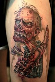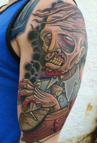 手臂可怕的卡通彩色僵尸纹身图案