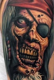 海盗卡通主题的彩色僵尸肖像手臂纹身图案