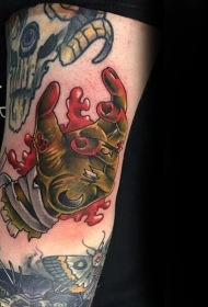 卡通风格彩色僵尸手和火焰手臂纹身图案
