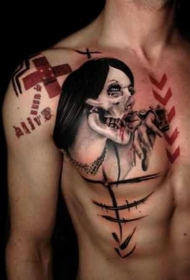 胸部new school彩色僵尸女人脸纹身图案