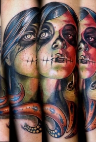 彩绘僵尸女孩和章鱼手臂纹身图案