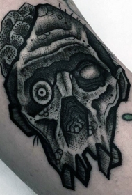 雕刻风格黑色的僵尸骷髅手臂纹身图案