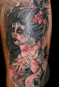 现代风格彩绘女僵尸手臂纹身图案