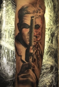 惊人的半僵尸半人和手枪手臂纹身图案