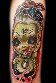new school彩色的僵尸娃娃与玫瑰和大脑手臂纹身图案