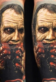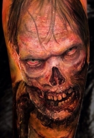 彩色恐怖风格的写实僵尸肖像手臂纹身图案