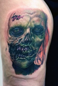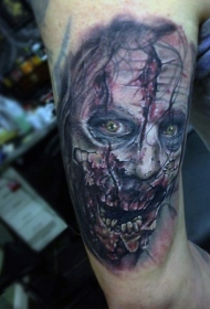 大臂写实的彩色逼真僵尸纹身图案