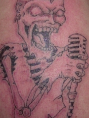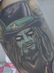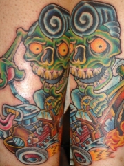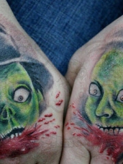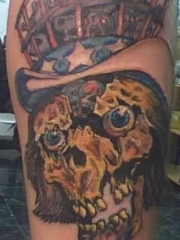 惊人的3D彩色邪恶僵尸头骨纹身图案