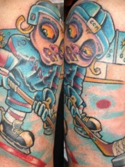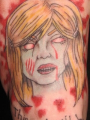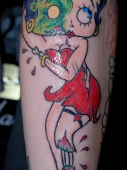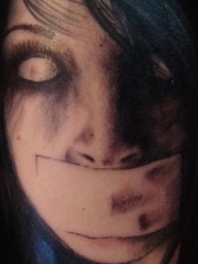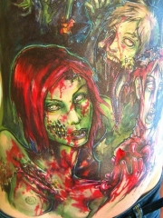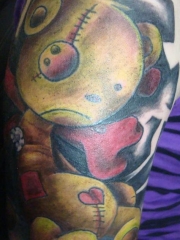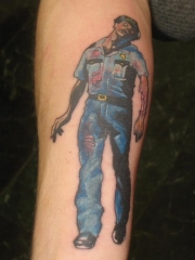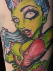 手臂3D彩色的卡通僵尸女孩与花朵纹身图案
