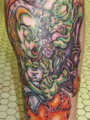 小腿3D彩色的卡通僵尸狗和大脑纹身图案