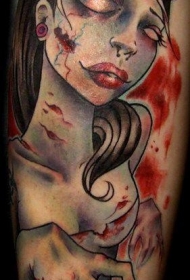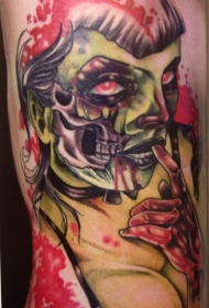 可怕的彩色僵尸女大臂纹身图案