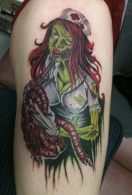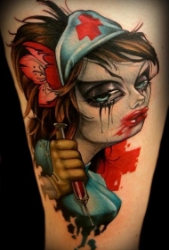 大腿彩色的可怕性感护士纹身图案