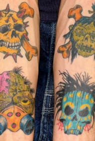 手臂彩色僵尸和骷髅纹身图案