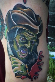 大腿彩色有趣的僵尸脸卡通纹身图案