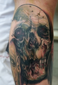 腿部彩色僵尸骷髅纹身图案