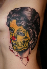 腰侧彩色复古风格五彩僵尸女人纹身图案
