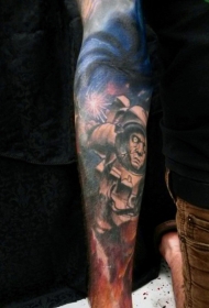手臂破碎僵尸骷髅纹身图案