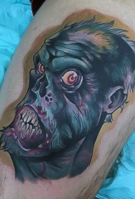 腿部彩色卡通僵尸纹身图案