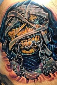胸部彩色铁链和恐怖僵尸纹身图案