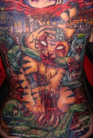 满背可怕的僵尸猫纹身图案