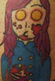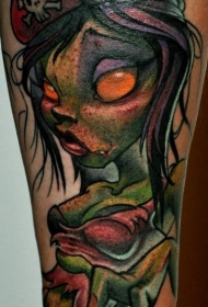 腿部卡通风格彩色僵尸女孩纹身图案
