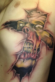 胸侧彩色僵尸撕裂纹身图案