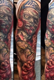手臂彩色滑稽的各种僵尸怪物纹身图案