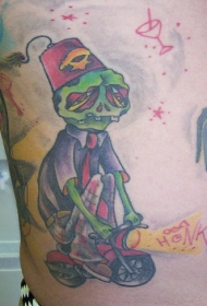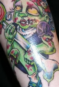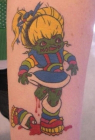 腿部彩色卡通僵尸女孩纹身图案