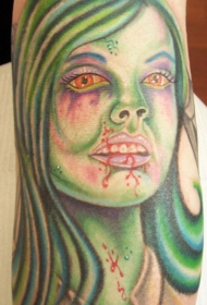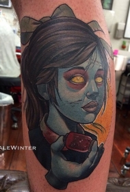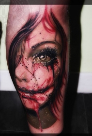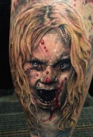 腿部彩色血腥僵尸女孩纹身图案