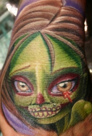 手背彩色可怕的女僵尸纹身图案