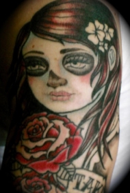 肩部彩色僵尸女孩玫瑰纹身图案