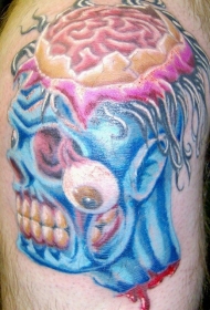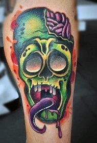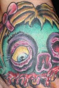 腿部彩色搞笑僵尸头纹身图案