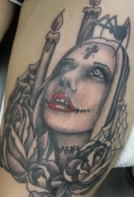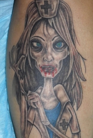 腿部彩色搞笑僵尸护士纹身图案