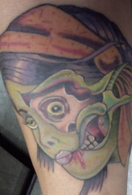 肩部彩色可怕僵尸头纹身图案