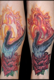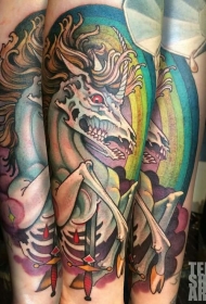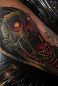 手臂彩色旧学校风格血腥僵尸骨架纹身