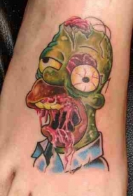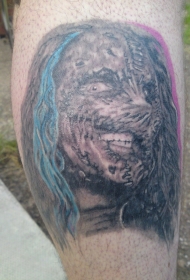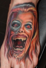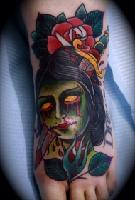 脚背彩色恐怖电影像毛骨悚然的女性僵尸纹身