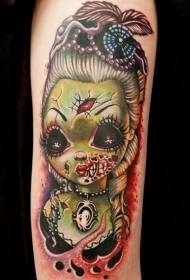 手臂彩色现代风格的僵尸娃娃纹身图案