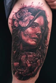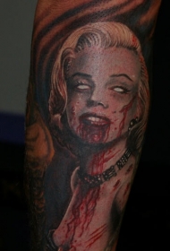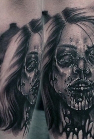 手臂恐怖电影主题的血腥僵尸女人纹身图案