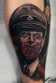 手臂彩色逼真的纳粹僵尸肖像纹身图案