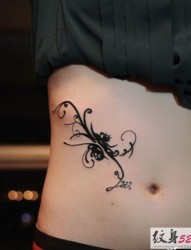 腰部漂亮的黄色玫瑰和荆棘纹身图案