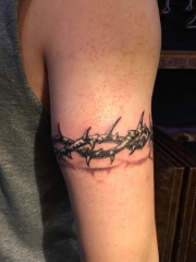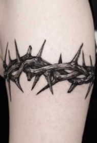 肩部惊人的逼真黑白荆棘刺纹身图案