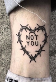 大腿黑色点刺恶魔女人和荆棘纹身图案