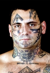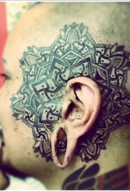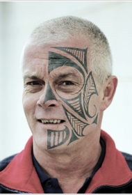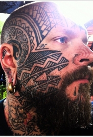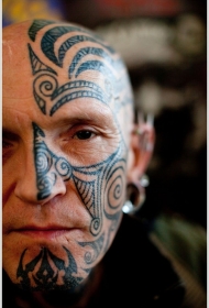 波利尼西亚女孩脸部黑色的图腾纹身图案