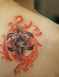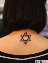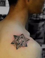 纹身六芒星图案 男生胸上黑灰的六芒星纹身图片