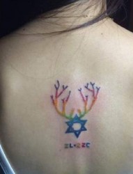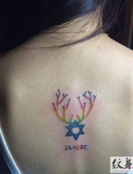 纹身六芒星图案 男生手臂上彩色的六芒星纹身图片