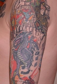 手臂龙骑士在天空纹身图案