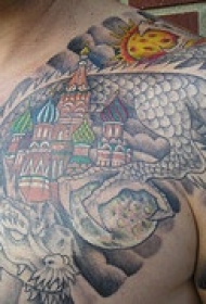 半甲俄罗斯房屋和龙纹身图案