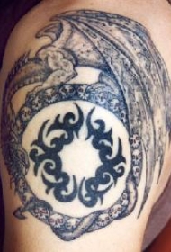 背部龙与满月纹身图案