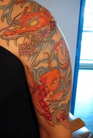 手臂肩部日本锦鲤与龙纹身图案